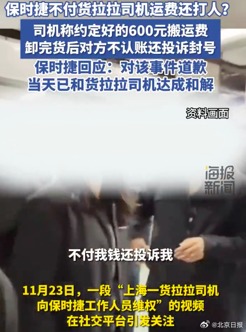 据海报新闻23日报谈,11月23日,一段“上海一货拉拉司机向保时捷使命主谈主员维权”的视频,在叮嘱平台激勉宽恕。