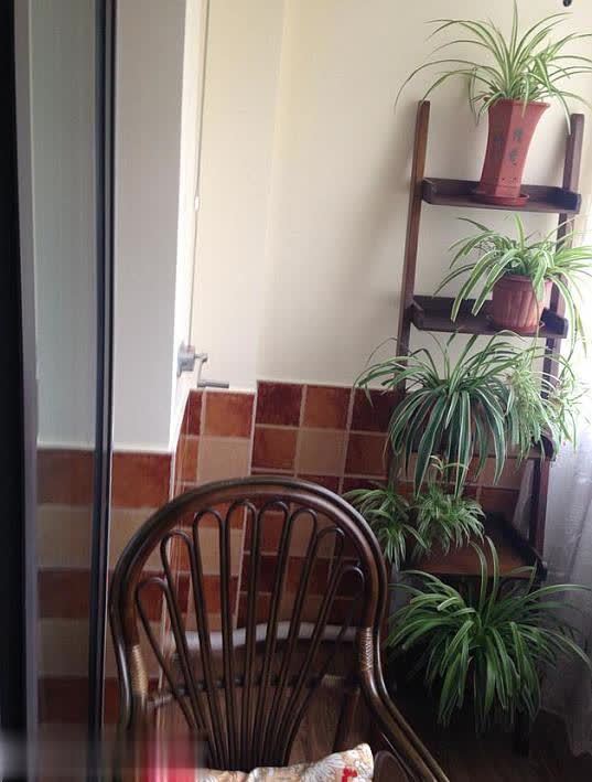 客厅外面有个小阳台,种了些花花卉草,还摒弃了一张失业椅,稳重时坐在椅子上喝喝茶、听听音乐,嗅觉相等景象。